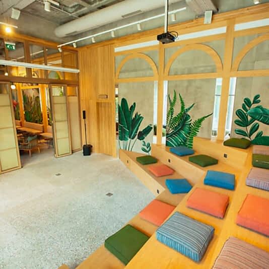 Ofis ve toplantı odalarından kütüphane ve meditasyon odalarına kadar her türlü ihtiyaca hizmet eden bir Kolektif.